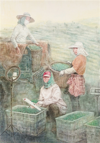 云上之春(中國畫) 謝曉紅 平凡的形象,不平凡的創造。 在“深入生活、扎根人民”的時代大潮中,越來越多勞動者形象成為藝術作品的主角。美術界更是積極行動,通過組織寫生與主題創作活動,傾情描繪普通勞動者。 走進勞動現場,讓美術工作者進一步理解了創造的真諦;為勞動者造像,讓藝術的價值得到更充分的釋放。 通過藝術塑造,勞動者形象更加生動立體,勞動者精神更加豐富深刻。艱苦奮斗的堅韌與質樸、改革創新的激情與活力、樂享生活的美好與浪漫,使丹青史詩更具藝術感染力,使“勞動最光榮、勞動最崇高、勞動最偉大、勞動最美麗”觀念更加深入人心。 以勞動圓夢,以奮斗啟航。在“五一”國際勞動節來臨之際,本版選登勞動題材美術新作,禮贊勞動、致敬勞動者,凝聚奮進新征程的強大精神力量。 ——編 者 |
