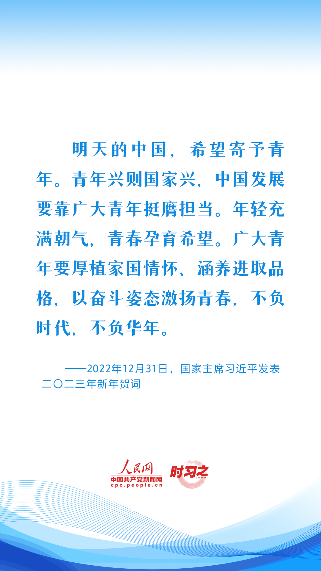 未來屬于青年,希望寄予青年。長期以來,習近平總書記始終關心青年成長成才、謀劃青年工作發展進步。言之諄諄、期望殷殷,激勵著廣大青年不負時代、不負韶華,在青春的賽道上奮力奔跑。