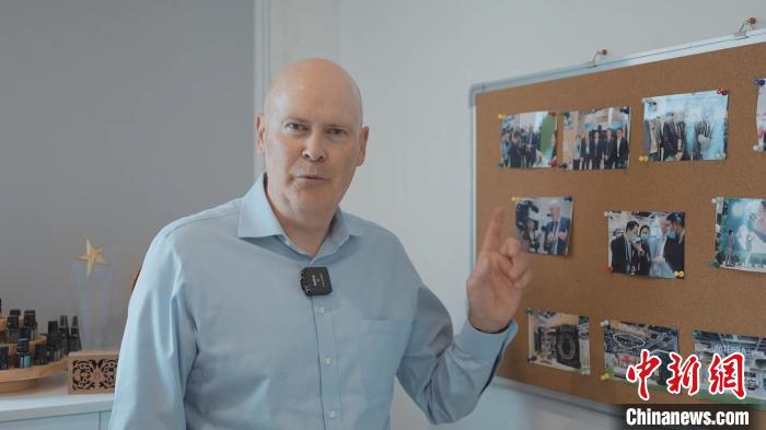 麥歐文的辦公室墻上,掛著十張參展歷屆進博會的照片。 康玉湛 攝