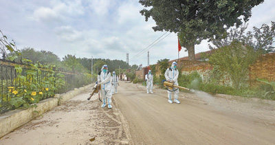 8月6日,河北省永清縣曹家務鄉張莊子村,工作人員在對洪水過后的街道進行消毒。 邵玉姿 龐趁友攝影報道 汛情就是命令,生命重于泰山,防汛救災工作絕不能有絲毫放松。加強力量組織救援,妥善安置受災群眾,抓緊修復受損基礎設施,落實各項防汛救災措施……連日來,各地區和有關部門擰成一股繩,以“時時放心不下”的責任感、“越是艱險越向前”的精氣神,全面加強災害防范應對,全力以赴開展搶險救災工作,全力保障人民群眾生命財產安全和社會大局穩定。廣大黨員干部和群眾團結一心、迎難而上,搶抓時間窗口,采取多種措施,盡快恢復正常生產生活秩序,堅決打贏防汛抗洪救災遭遇戰。 |
