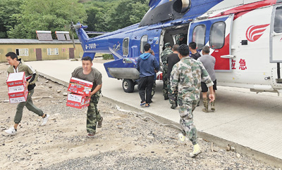 8月6日,黑龍江省應急管理廳調派直升機向受災地區運送救援物資。 劉溫馨 段紅偉攝影報道