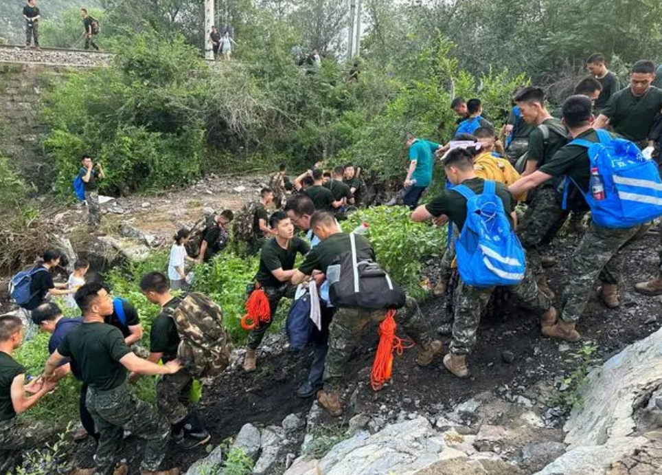 在河北保定淶水的三坡鎮,救援工作仍在進行,當地已轉移游客和群眾2.6萬人,16個失聯村莊取得聯系。