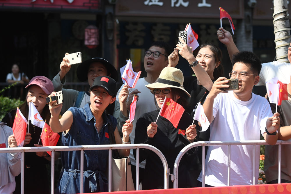 ↑觀眾觀看火炬傳遞。