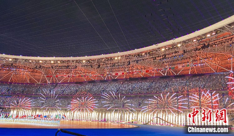 杭州亞運會開幕式現場點燃數字煙花。項菁 攝