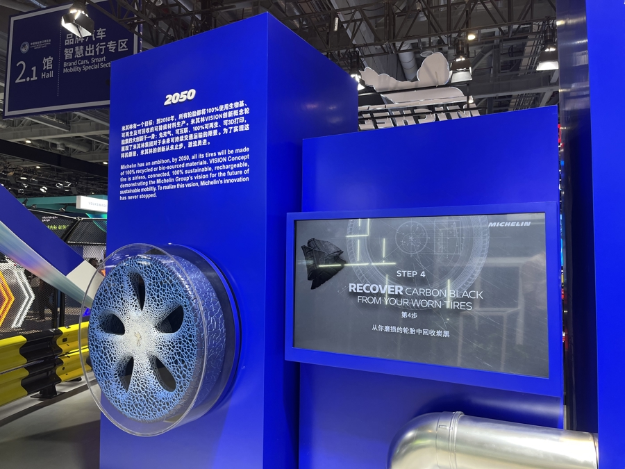 選手和“教練”能夠實現流暢對話,實際上就是依靠今年爆火的自然語言處理技術。隨著人工智能學科的不斷進步,十年間歐姆龍乒乓球教練機器人變得越來越智能,越來越“懂你”。 “第一代乒乓球機器人連回球都是一個很吃力的事情,而且經常會出故障,那個時候真的有點‘傻’?!眲钥』貞?,機器人升級到第二代、第三代,可以順暢地接球,但仍然是一個“業余選手”。 隨著自動化技術的不斷進步,機器學習的不斷深入,今天,第八代乒乓球機器人已經可以和奧運冠軍進行切磋。奧運冠軍陳玘在現場體驗后表示,這臺乒乓球教練機器人已經可以達到青少年冠軍的相同水平。 零部件越來越“綠色” 如果說技術裝備館致力于實現“人機融合”,那么在更多進博的場館中,人與自然的融合則蔚然成風。從細微做起,許多進博會的展品正在變得越來越“綠色”:消費展區,洗發水的包裝悄悄變成了可回收環保材質;醫療器械展區,生物醫藥企業搬出了使用綠電的“碳中和”工廠;食品展區,水果商拿出了瑕疵水果制作的生物皮革…… 本屆進博會,米其林帶著其最新一代可持續材料輪胎亮相展臺,這款輪胎也是進博會的明星展品之一。今年9月底,米其林的“綠色輪胎”從盧森堡運抵上海浦東國際機場,經上海海關快速審核后“秒放”通關,順利入境,成為本屆進博會首票入境的展品。 自2021年起,這款“綠色輪胎”就開始在進博會持續亮相。當年,這款輪胎的可持續材料含量為46%。到了2022年,含量升到了53%。今年,這款輪胎的可持續材料含量提高至63%。米其林中國研發中心總經理高德華介紹,這款明星輪胎所使用的可持續材料包括天然橡膠、廢舊輪胎中回收提取的炭黑、廢鋼中回收的鋼材、以及橙皮、檸檬皮、松香和葵花籽油提取物,專門適配于氫燃料原型賽車Mission H24和保時捷的電動賽車Porsche 718 Cayman GT4 ePerformance。