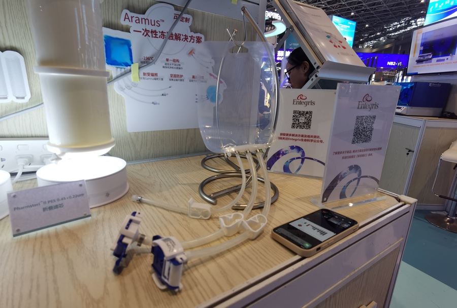 距離快奧森多十幾步路的另一個小展臺上,來自美國的應特格展示了一系列進口冷凍袋,采用含氟聚合物作為原料的這些冷凍袋可以耐受最低-196℃的超低溫,從1米高處跌落,不會因“玻璃化”而碎裂,確保袋中珍貴物質的完整和安全。