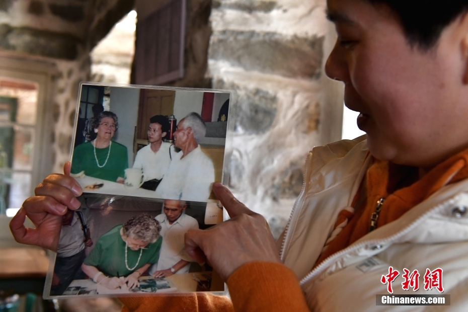 11月18日,福州鼓嶺,郭秀玲向記者展示爺爺郭茂爐與加德納夫人的合影。1901年,襁褓之中的密爾頓·加德納隨父母來到中國。此后10年,加德納一家每年夏季都在鼓嶺避暑,這里給他留下了難忘的印象?;氐矫绹?,他最大的心愿就是能再回到兒時的中國故園,卻未能如愿。臨終前,他仍不斷念叨著“Kuliang,Kuliang”。加德納夫人幾經尋訪,終于弄清丈夫所眷念的故園是中國福州的鼓嶺,并在1992年來到鼓嶺。郭秀玲說,爺爺郭茂爐是加德納先生在鼓嶺時的玩伴,加德納夫人訪問鼓嶺期間,郭家人熱情招待了她。