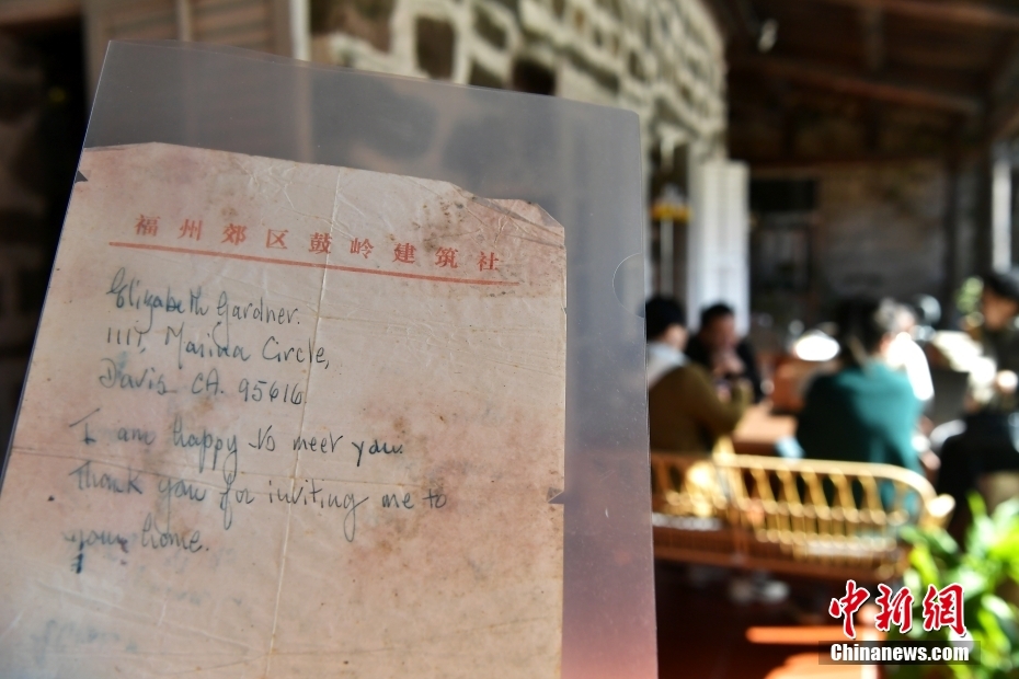 11月18日,在福州鼓嶺竹林山莊,郭秀玲一直珍藏著幾張照片和一份用英文手寫的感謝信,信紙已經變黃,被小心保存在一個文件夾里。圖為郭秀玲珍藏的加德納夫人寫給爺爺郭茂爐的感謝信。