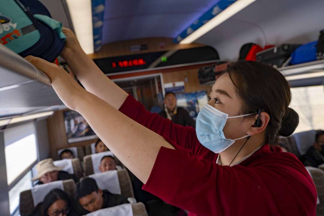 隨著列車從拉薩站緩緩開出,李丹開始了列車服務——邊走邊觀察邊詢問,她細心地觀察著乘客的情況?!斑@兩天是節后返程高峰,我們車班針對旅客年齡、身份等不同特點,進行了歸納與分析,并根據不同群體的需求,整理溝通要點,收集服務案例,使我們的服務能更好地滿足不同旅客的需求?!崩畹ふf。