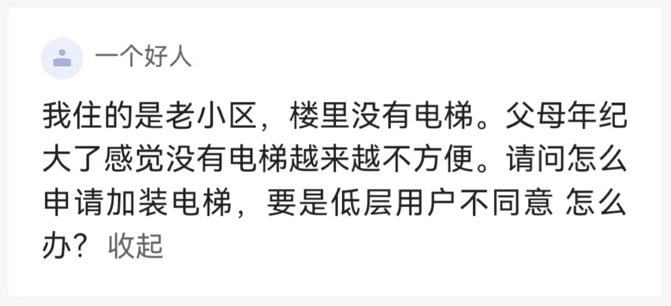 電梯加裝以后,有的是平層,出了電梯直接到自己的單元;有的可能是錯層,出電梯也可能在上半層或者下半層,也沒有解決最后一米的問題。但是從總體效果來看,加裝電梯還是方便了樓上的居民,特別是老年居民,所以整個政策導向,是按照“誰受益誰付費,誰使用誰付費”的原則,住在首層的群眾如果不使用電梯,不用繳納改造的費用,也不需要繳納使用的費用。