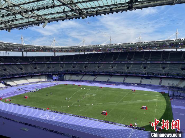 法蘭西體育場內的紫色跑道。中新社記者 邢翀 攝