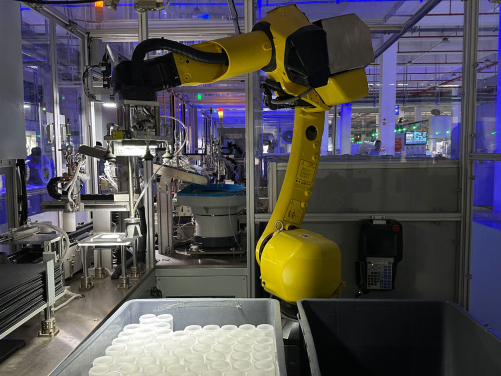 在九牧集團精密注塑車間,數臺自動搬運機器人在車間與倉庫間穿梭,注塑機臺上的機械臂搭載紅外攝像頭,自動抓取物料。