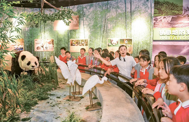 圖為2024年5月17日,學生們在江西宜豐熊貓科技館開展“行走的思政課”主題科普教育活動,增強節約資源和保護自然環境意識。 人民圖片 周亮/攝