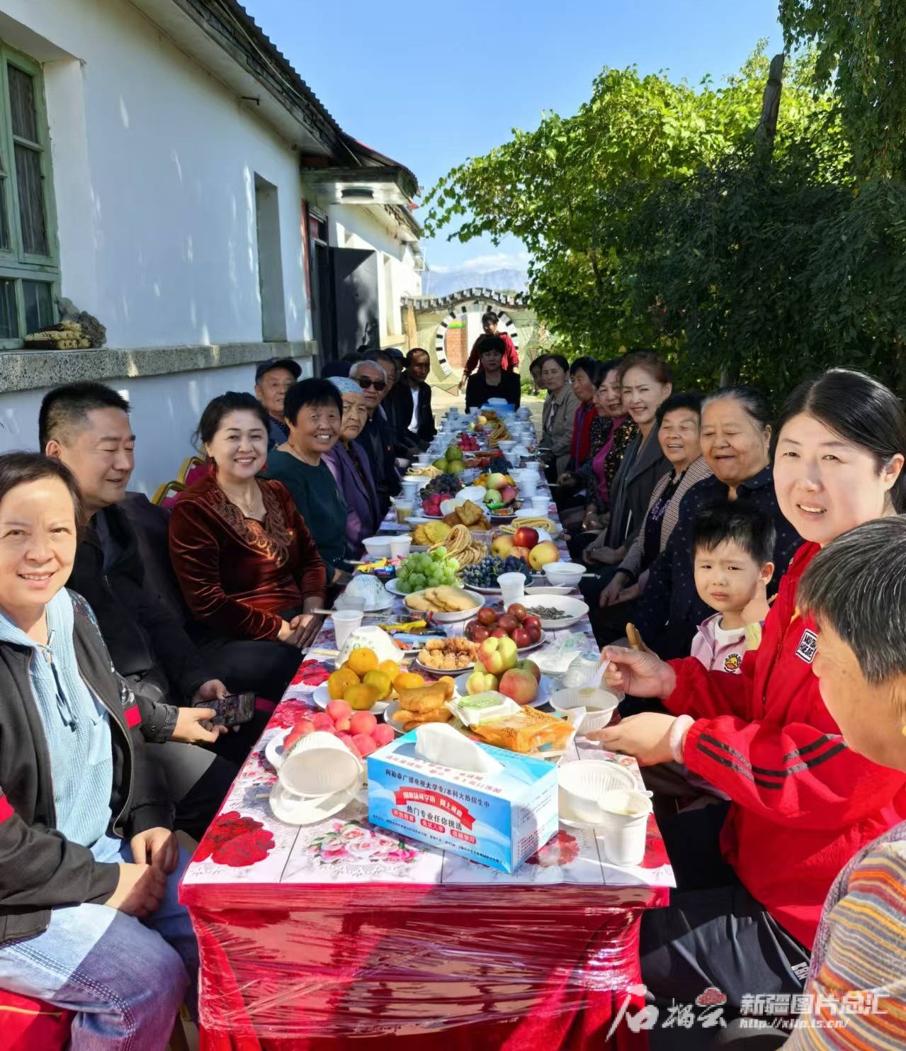 【奮進強國路 闊步新征程】 天山網-新疆日報記者 魏永貴 張婷 9月16日14時,阿勒泰市紅墩鎮“戶兒家”文化大院里,傳來陣陣歡聲笑語。 葡萄架旁,白樺樹下,長條桌上月餅、馓子、奶疙瘩、果醬、葡萄、蘋果擺得滿滿當當,奶茶的醇香撲鼻而來。紅墩鎮30多位居民坐在桌前,談笑風生。大院女主人李紅秀跑前跑后忙個不停。