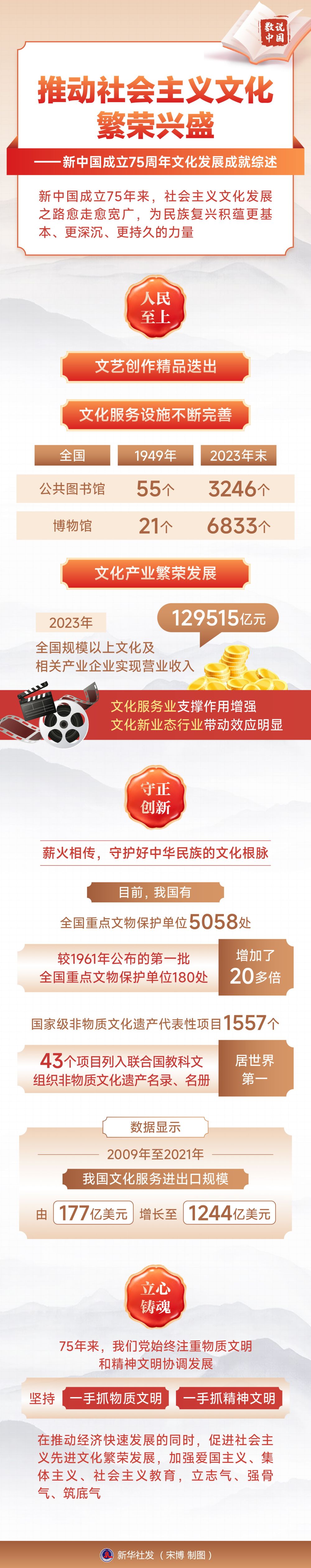 數說中國·75載輝煌成就丨推動社會主義文化繁榮興盛——新中國成立75周年文化發展成就綜述