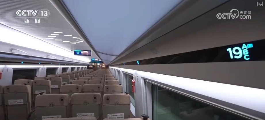首先,它的座椅從過去的18排增加到了19排,載客能力大大提升。其次,每一節車廂都增加了一個大的行李架,旅客存放行李的空間也相應增加。在車身長度保持不變的前提下,多出來的空間從哪里來?電氣柜和過去相比瘦身了不少,還有一些基礎設施改到了車下,這樣車廂的使用空間大大增加了。