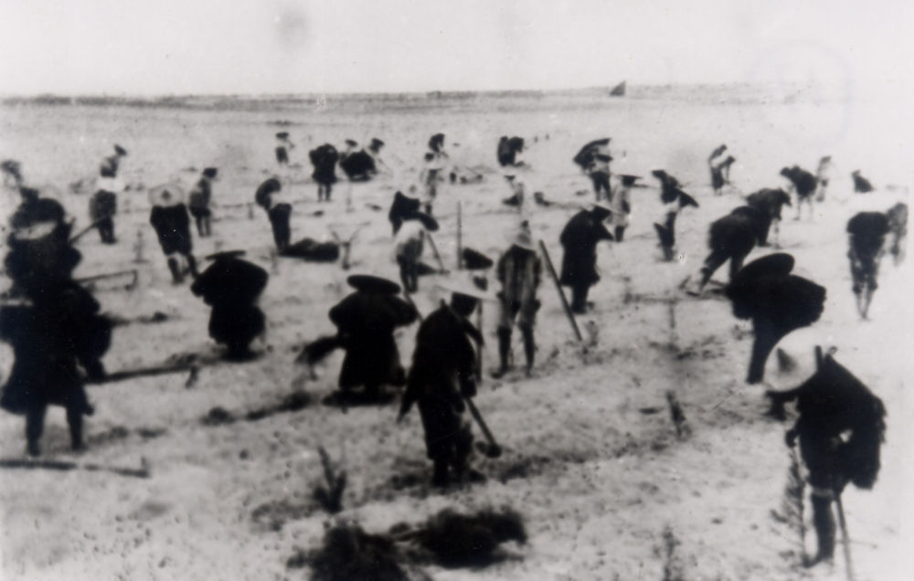 上世紀東山百姓在沙灘造林(資料照片)。