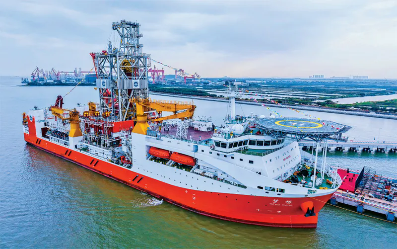 2024年11月17日,擁有最大11000米的鉆深能力、我國自主設計建造的首艘大洋鉆探船“夢想”號在廣州正式入列,標志著我國深海探測關鍵技術裝備取得重大突破。圖為當日拍攝的靠泊在廣州海洋地質調查局科考碼頭的大洋鉆探船“夢想”號。新華社記者 劉大偉/攝
