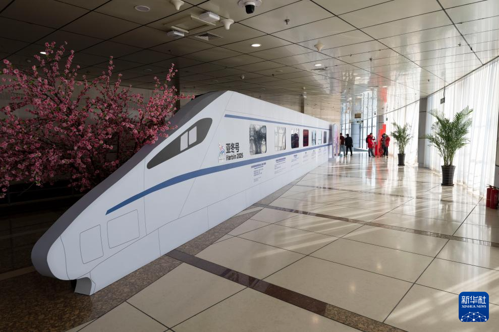 這是1月31日拍攝的主媒體中心內的“亞冬號”展示牌。