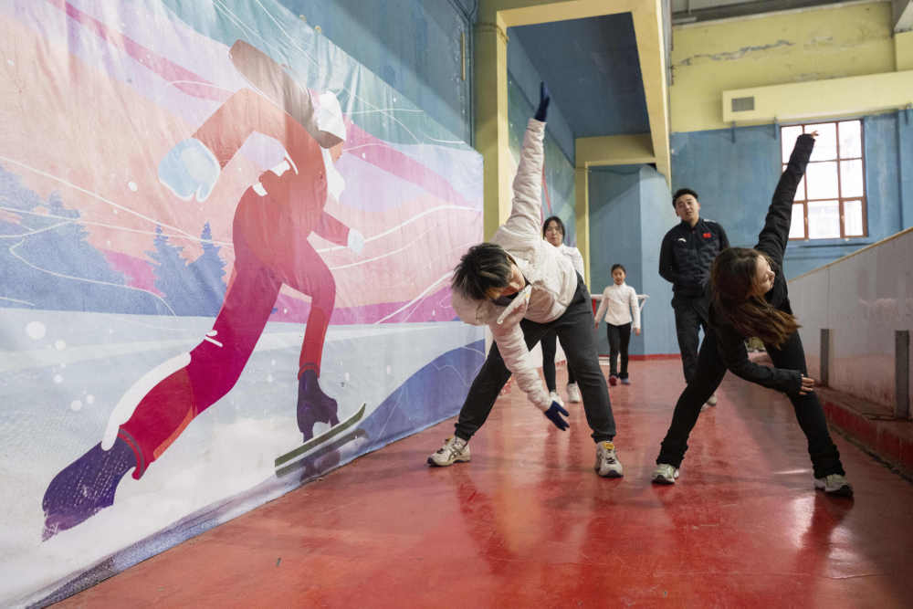 2023年3月14日,一名中學體育老師在河北張家口冰之夢滑冰場指導學生。在張家口這座“冬奧之城”,市民百姓參加冰雪運動已經蔚然成風,“全季全體育”理念發展成為城市新名片。