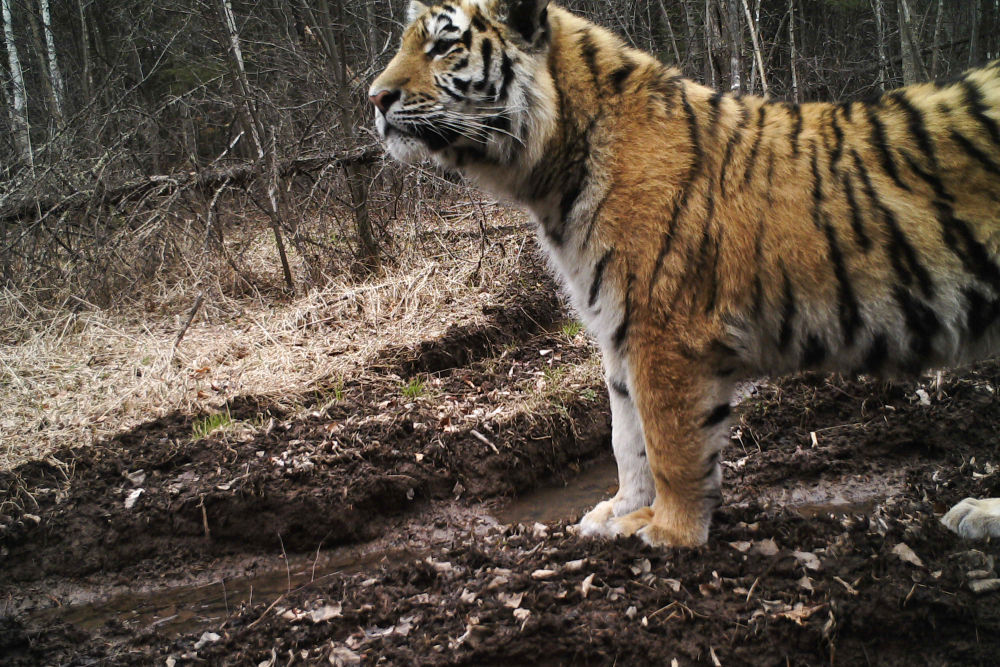 這是紅外相機在東北虎豹國家公園龍江森工綏陽片區拍攝的野生東北虎(2023年4月29日攝)。新華社發(龍江森工集團綏陽林業局公司供圖)
