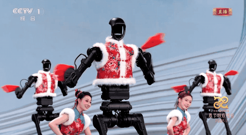 △在2025年總臺央視春晚上,宇樹科技的16個人形機器人與16名舞蹈演員協同共舞。