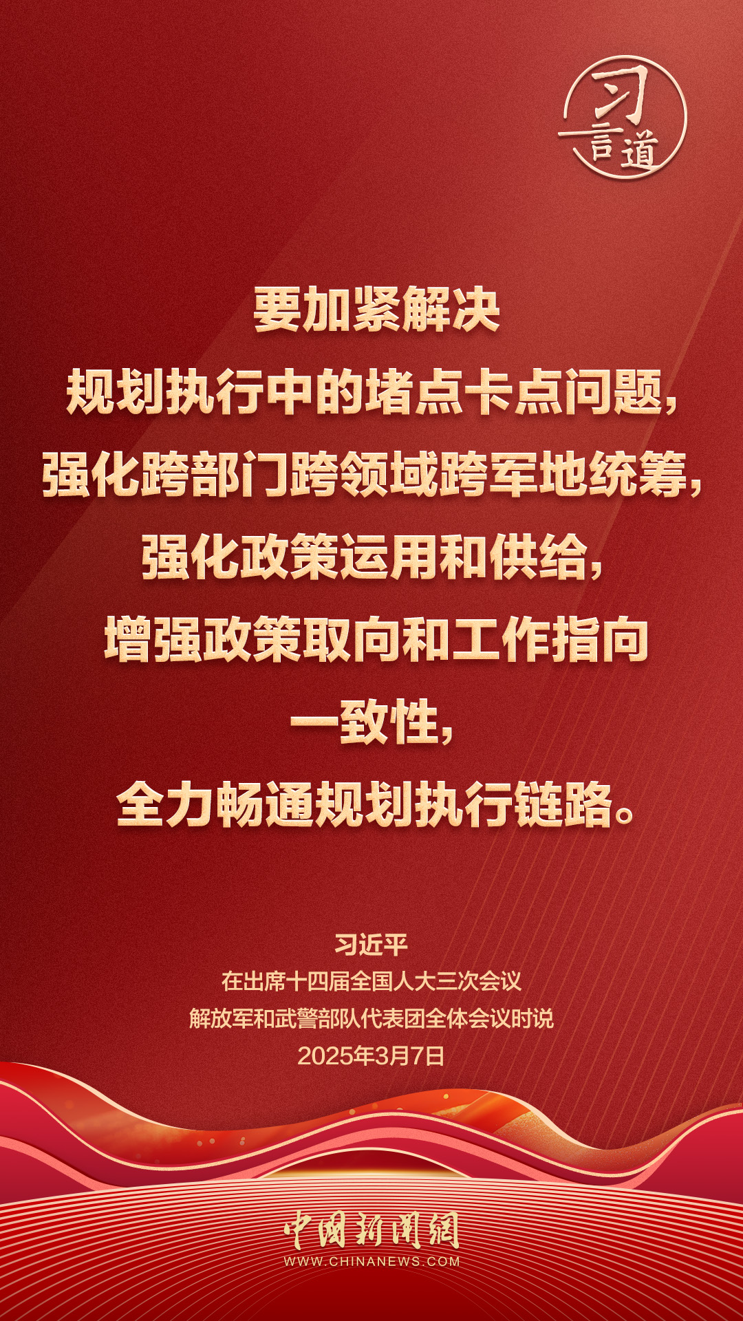 中共中央總書記、國家主席、中央軍委主席習近平7日在出席十四屆全國人大三次會議解放軍和武警部隊代表團全體會議時強調——