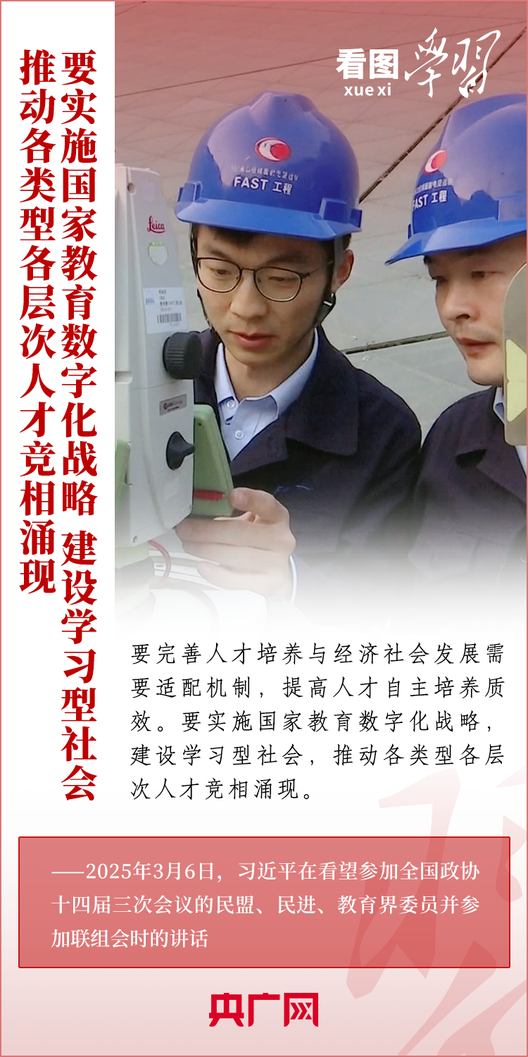 “建設教育強國、科技強國、人才強國,是全黨全社會的共同責任?!?月6日,習近平總書記在看望參加全國政協十四屆三次會議的民盟、民進、教育界委員并參加聯組會時發表重要講話??倳浘妥龊媒逃?、科技、人才工作作出深刻闡釋,強調必須深刻把握中國式現代化對教育、科技、人才的需求,強化教育對科技和人才的支撐作用,進一步形成人才輩出、人盡其才、才盡其用的生動局面。一起來學習!