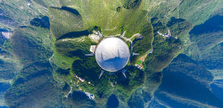 2024年9月25日拍攝的位于貴州省平塘縣的“中國天眼”(無人機全景照片,維護保養期間拍攝)。新華社記者 歐東衢 攝