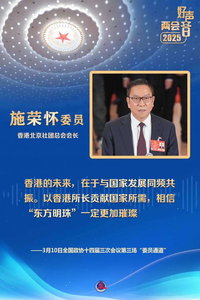 香港北京社團總會會長施榮懷委員體會到,隨著港珠澳大橋開通,香港更好融入大灣區互聯互通發展。他說,香港的未來,在于與國家發展同頻共振。以香港所長貢獻國家所需,相信“東方明珠”一定更加璀璨。