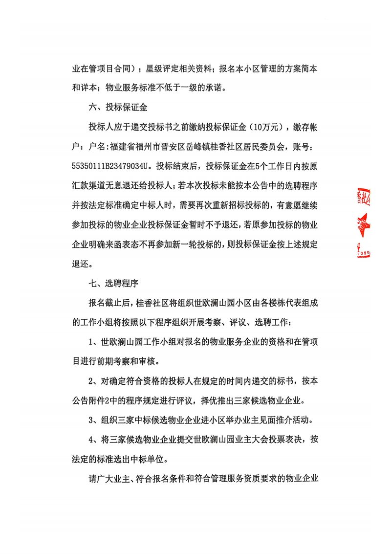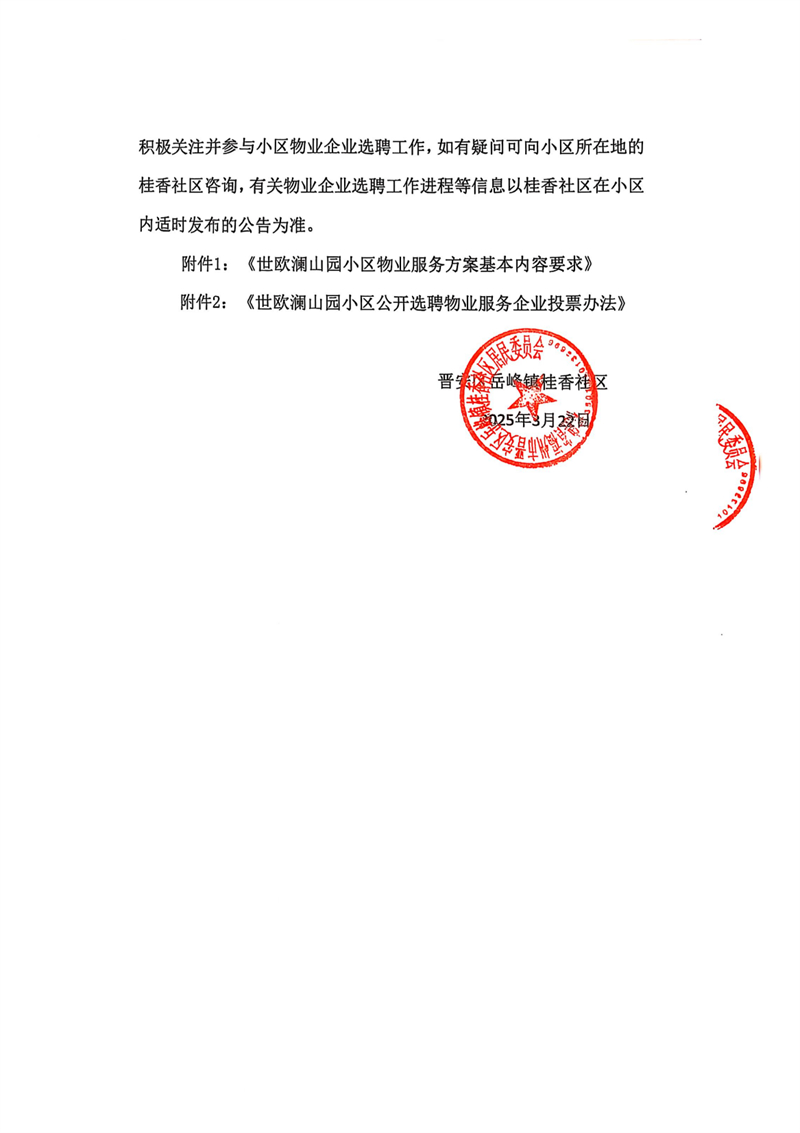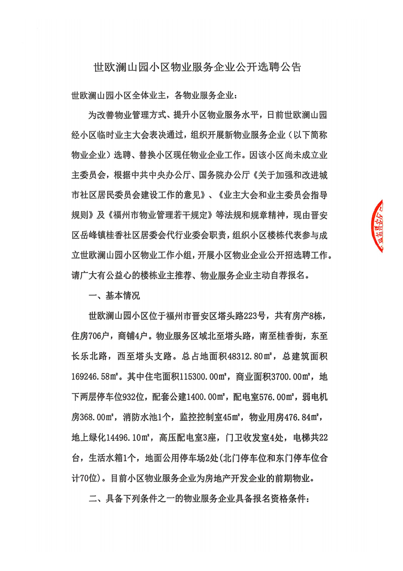 • 世歐瀾山園小區物業服務企業公開選聘公告
