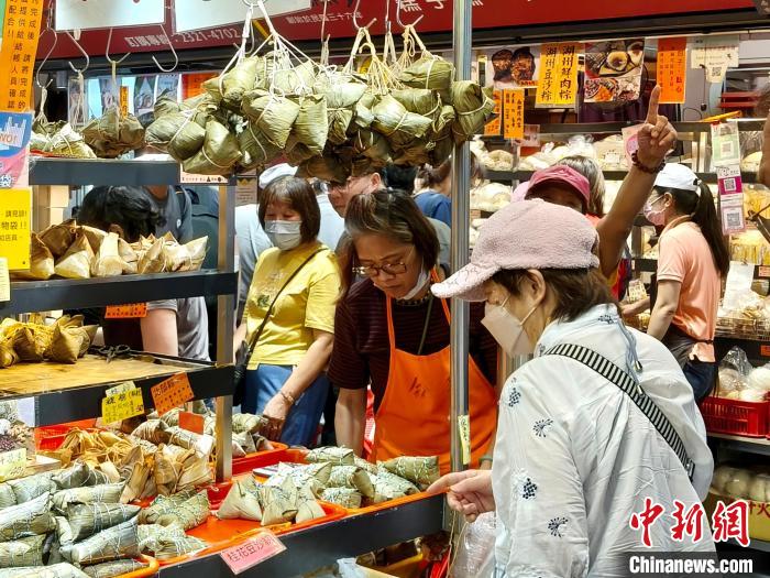 5月30日,臺灣迎來端午節連假,各大市場粽香四溢,民眾紛紛前往選購粽子等節慶美食。圖為臺北南門市場,民眾排隊選購粽子。中新社記者 張曉曦 攝