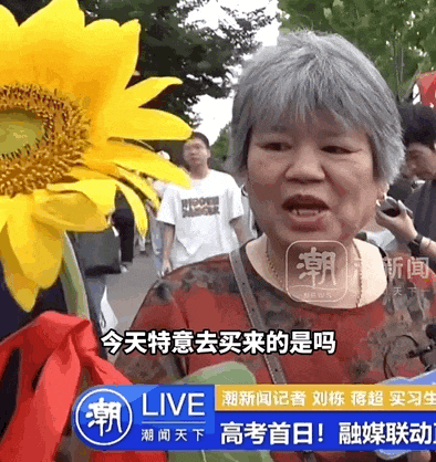 無獨有偶 在浙江杭州一考場外 70歲外婆 拿著外公特意為外孫種的向日葵送考 祝他一舉奪魁