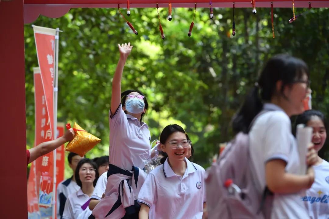 廣東廣州 考生進考場前 觸摸“文昌筆”祈福 愿放手一搏,從容不迫!