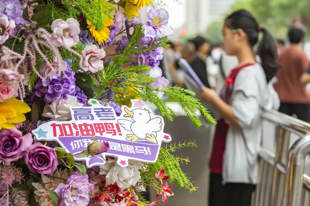 一路生花 全國各考場外 家長們手持有寓意“奪魁”的葵花 及“好運蓮蓮”的蓮花 為考生加油 愿你披荊斬棘,一路生花!