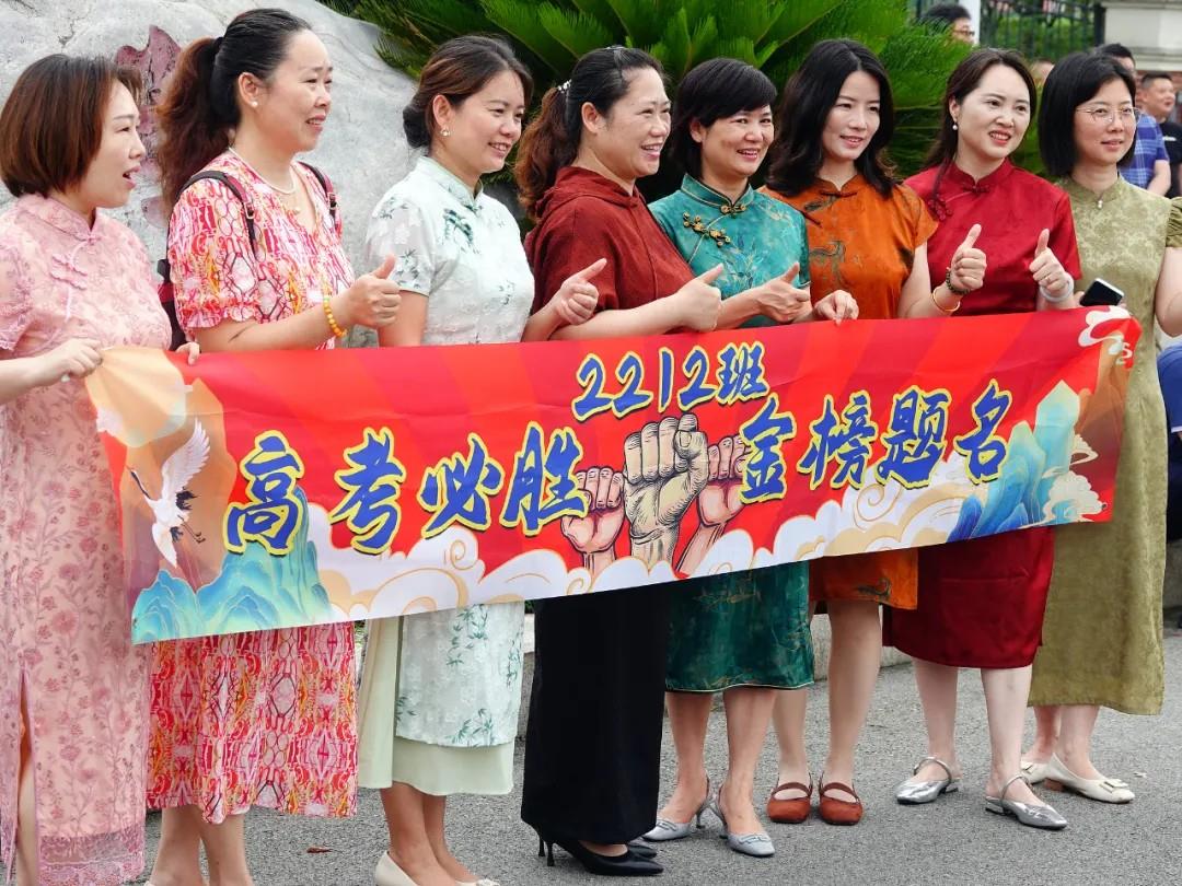 旗開得勝 考場外 家長們身著旗袍,手捧向日葵 為考生打氣助威 愿旗開得勝,一舉奪魁!