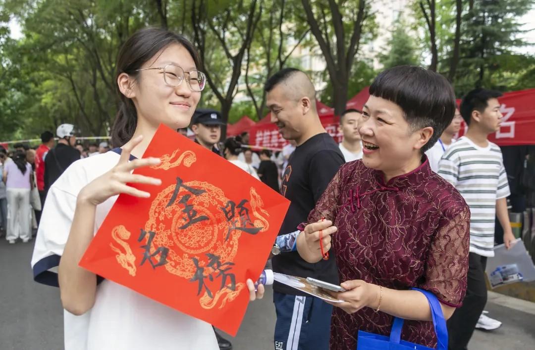 美好期許 浙江杭州一考點外 兩位保送北大的“學霸” 帶著清北保送名單 穿紅色“滿分”T恤 為同學們助威 “學霸送考團”說: “祝同學們考上心儀大學” 笑傲考場,大勝歸來!