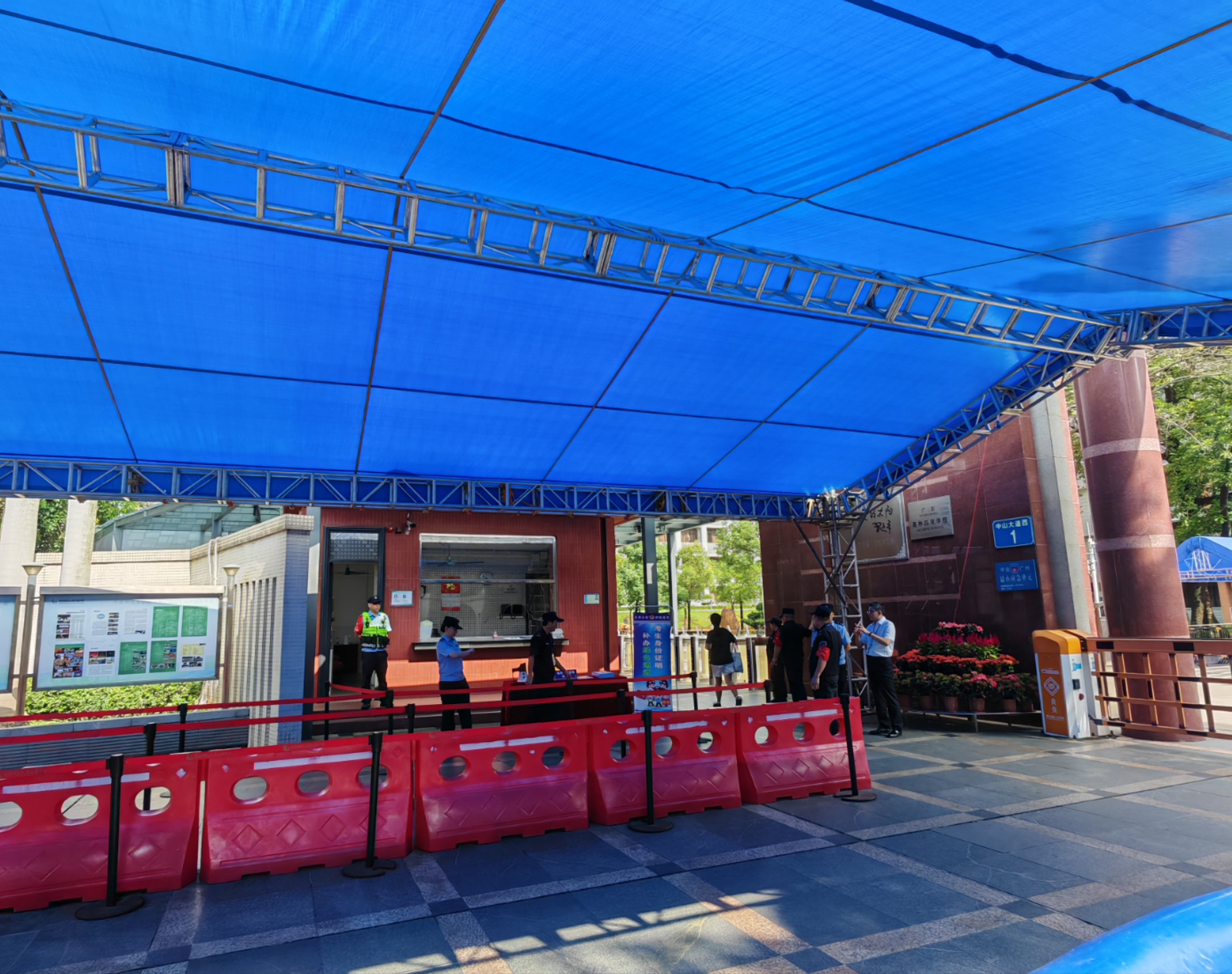 在廣州,華南師范大學附屬中學考點前的保障人員早早就位??键c所轄派出所派出工作人員現場維持秩序,交警疏導交通,讓考生進考場的通道更加清晰有序??键c為考生準備了午餐,考生可購買飯票就餐,并在考點安排的教室午休。