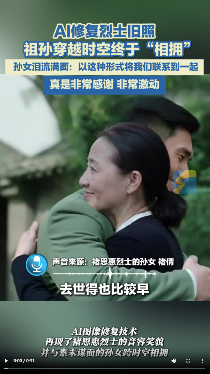 銘記歷史 緬懷先烈丨AI修復烈士舊照 祖孫穿越時空終于“相擁”