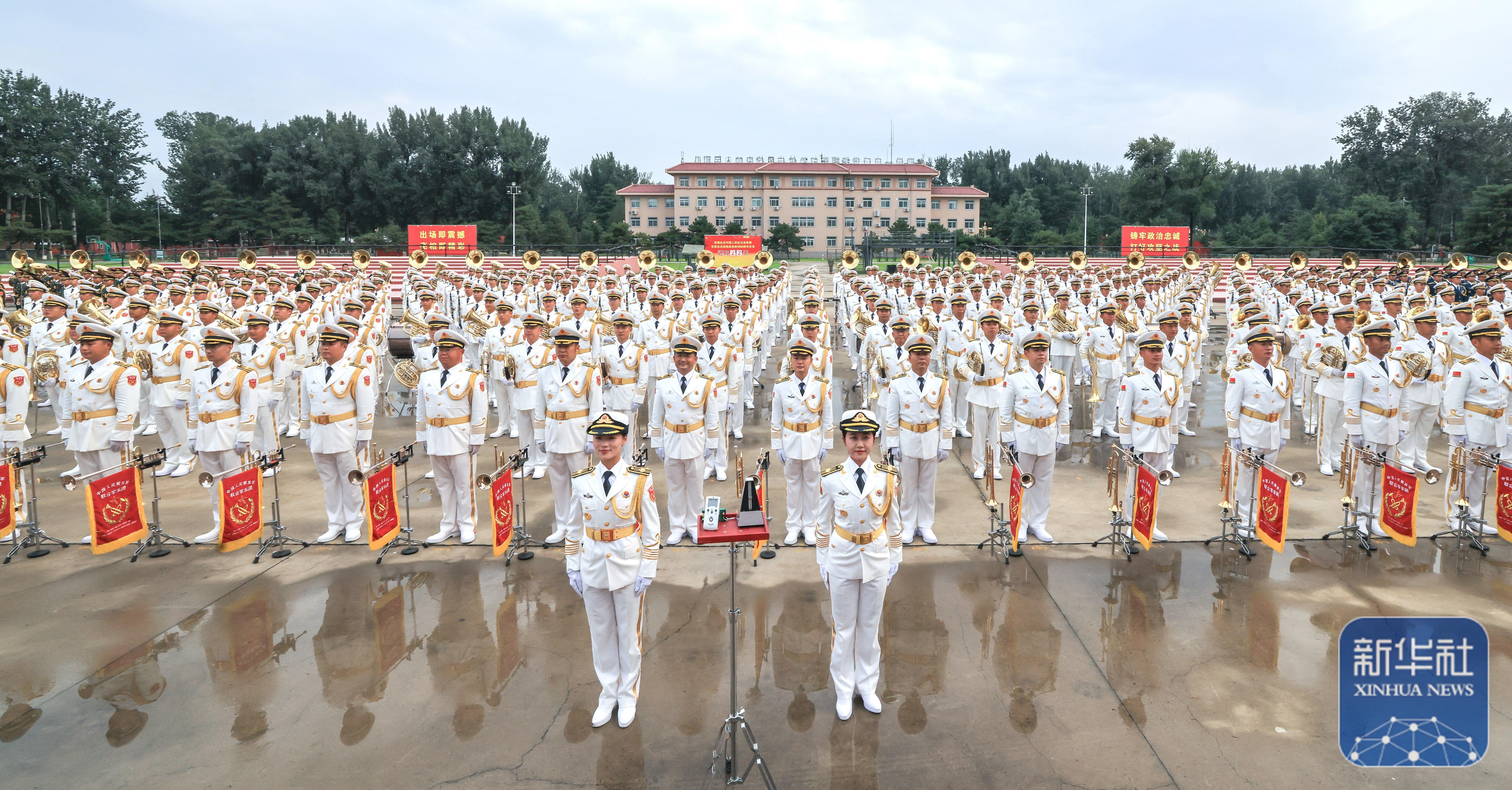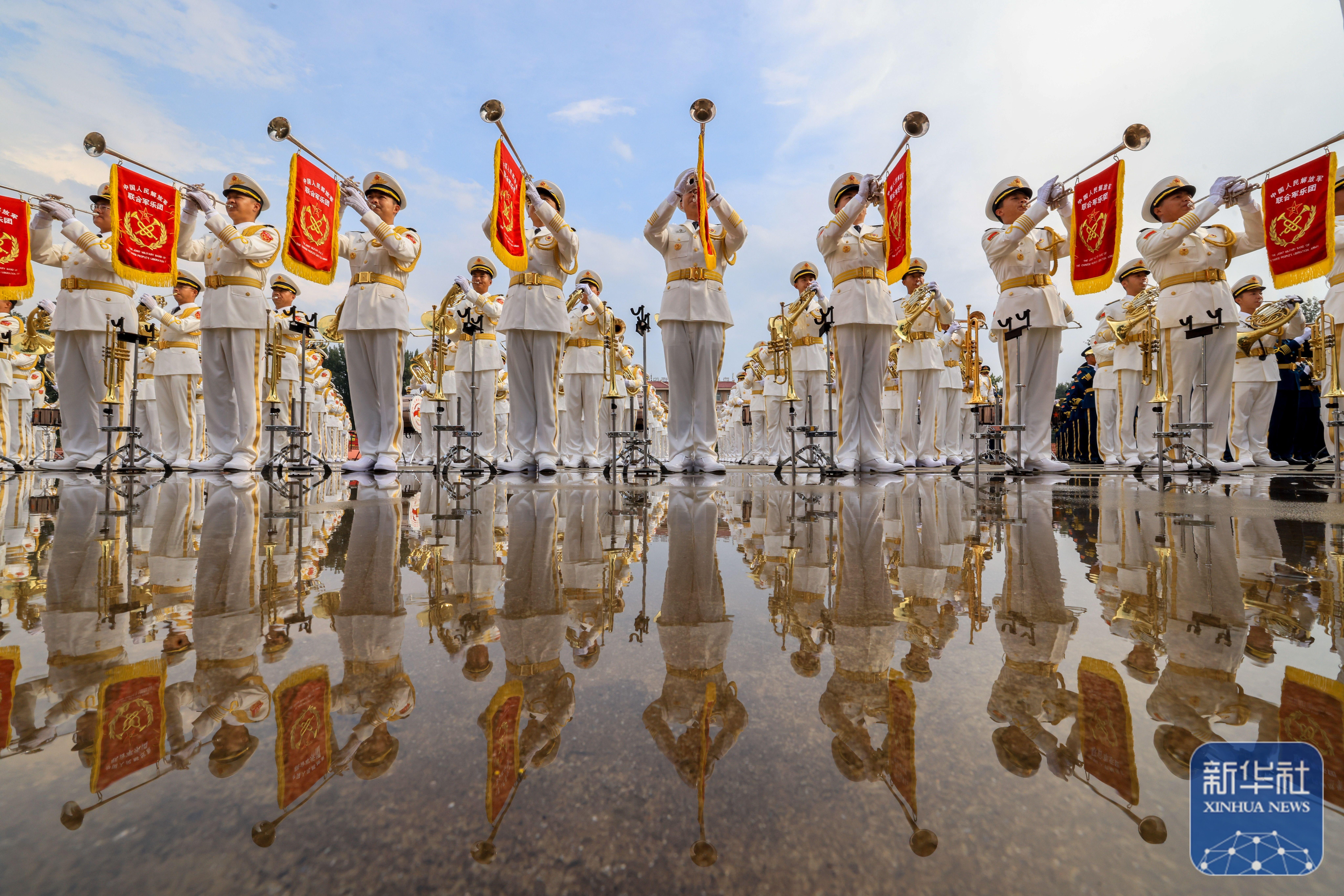 ↑ 中國人民解放軍聯合軍樂團在進行訓練(8月12日攝)。新華社記者 殷剛 攝