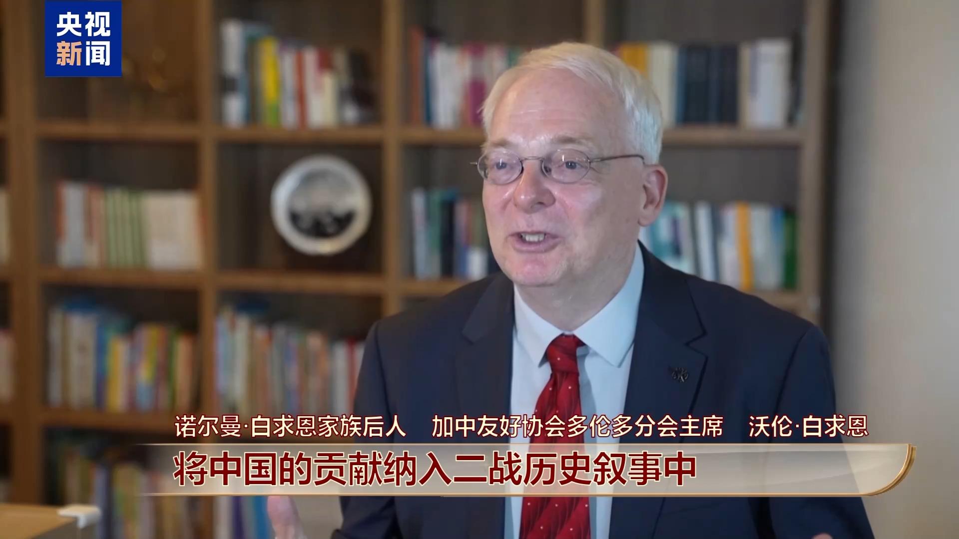 諾爾曼·白求恩家族后人 加中友好協會多倫多分會主席 沃倫·白求恩:我們要更有全球化視角或者說國際主義精神。我認為我們應該重點關注年輕人,將中國的貢獻納入二戰歷史敘事中,因為80年后的今天,真正經歷過二戰且依然健在的人已經很少了。我們必須分享研究成果,并向公眾傳播這些歷史。