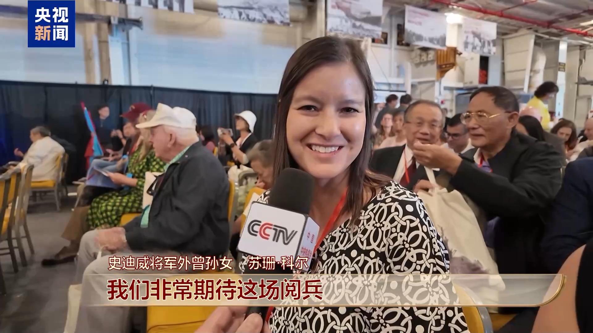 史迪威將軍外曾孫女 蘇珊·科爾:能夠受邀觀看閱兵,我們感到非常激動和榮幸。我們非常期待這場閱兵。我認為紀念和尊重歷史是非常重要的,尤其是前人的犧牲和貢獻。