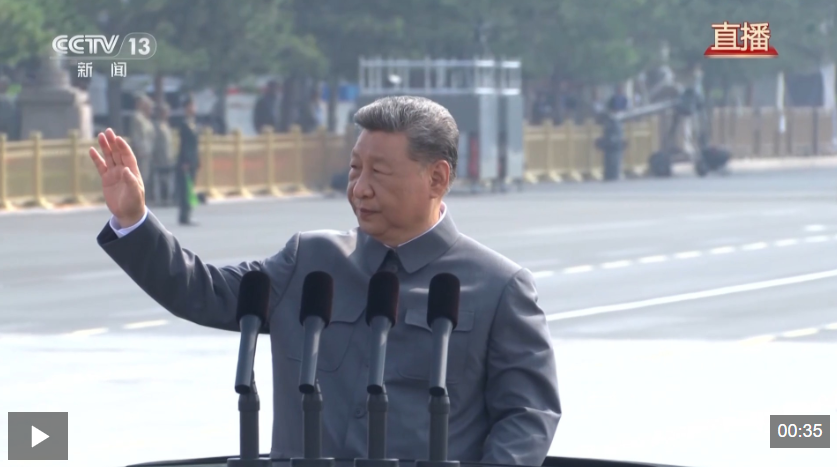 習近平向廣場觀禮臺上的各界代表揮手致意