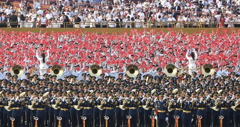 △2025年9月3日,紀念中國人民抗日戰爭暨世界反法西斯戰爭勝利80周年大會在北京隆重舉行。這是中國人民解放軍聯合軍樂團和合唱團。