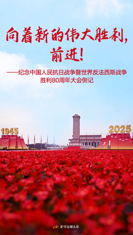 2025年9月3日,時間的指針標注新的歷史刻度—— 中國人民抗日戰爭暨世界反法西斯戰爭勝利80周年紀念活動隆重舉行。這是全世界一切愛好和平的國家和人民的莊重典禮。 各界代表和群眾匯聚北京天安門廣場隆重集會,黨和國家舉行盛大閱兵儀式,共同銘記歷史、緬懷先烈、珍愛和平、開創未來。 1931—1945,中國人民經過艱苦卓絕的浴血奮戰,取得近代以來反抗外敵入侵的第一次完全勝利。 1945—2025,偉大抗戰精神激勵中國人民克服一切艱難險阻,中華民族迎來了從站起來、富起來到強起來的偉大飛躍,中國式現代化呈現出無比光明燦爛的前景。 歷史記憶永不褪色,時代潮流浩蕩向前。 習近平總書記莊嚴宣示:“中華民族偉大復興勢不可擋!人類和平與發展的崇高事業必將勝利!” (一) 初秋的北京,天高地闊。 修葺一新的天安門城樓大殿內,懸掛著一幅題為《眾志成城》的巨幅畫作:層林盡染、萬山紅遍間,長城如一條巨龍蜿蜒盤旋。 大殿外,天安門廣場兩側80面紅旗迎風招展,巍峨矗立的人民英雄紀念碑前,14座烽燧托舉起“1945”“2025”年號。廣場觀禮臺以城墻紅、橄欖綠、豐饒金為三主色,形似三個巨大“人”字,組成“眾”字造型。 8時35分,中共中央總書記、國家主席、中央軍委主席習近平登上天安門城樓,同抗戰老戰士申秉宸、張坪、劉世鉞、傅英、羅競輝、宋其祥一一握手,向他們表示崇高敬意。 這次紀念大會,邀請了參加過抗戰的老戰士、老同志、老民兵、地方支前模范代表和抗戰烈士親屬代表到現場觀禮。 觀禮臺上,97歲的抗戰老戰士齊英胸前勛章閃耀:“12歲我加入了八路軍,1949年在開國大典現場見證了新中國的成立,今天再次感受祖國的強大。犧牲了的戰友們,血沒有白流?!?/p> “我的家在東北松花江上,那里有我的同胞”“敵人從哪里進攻,我們就要他在哪里滅亡”“保衛家鄉,保衛黃河,保衛華北,保衛全中國”“沒有共產黨,就沒有新中國”…… 千余人組成的聯合軍樂團奏響熟悉的旋律,合唱團嘹亮的歌聲如同雄渾史詩,講述那段壯懷激烈、前赴后繼的烽火歲月。紀念大會現場的人群情不自禁地合唱,激發起海內外中華兒女的情感共鳴。 穿越革命和建設的洪流,激蕩改革與發展的風云,中國共產黨領導中國人民一路乘風破浪,中國道路更加寬廣,中國力量不可阻擋。 “波瀾壯闊的抗日戰爭,孕育偉大的抗戰精神。這是中國人民彌足珍貴的精神財富,將永遠激勵我們克服艱難險阻、一路向前?!敝袊皆鹿こ炭傇O計師、中國工程院院士吳偉仁說。 此時此刻,東長安街上,鐵甲生輝、重器列陣,人民軍隊以嚴整的軍容、雄壯的氣勢、昂揚的精神,等待黨和人民的檢閱。 大江南北、長城內外,從白山黑水到南海之濱,從江南水鄉到大漠戈壁,現場畫面和聲音隨著直播信號傳遍中國大地。 8時55分,習近平總書記等黨和國家領導人及應邀觀禮的國際政要來到天安門城樓主席臺,全場爆發出熱烈掌聲。 (二) 9時整,紀念中國人民抗日戰爭暨世界反法西斯戰爭勝利80周年大會開始。 80響禮炮震徹云霄,國旗護衛隊以堅定有力的步伐,從人民英雄紀念碑行進至升旗區。 80年,從偉大勝利走向偉大復興。這是民族獨立、人民解放的路,是國家富強、人民幸福的路,是和平發展、命運與共的路。 “起來!不愿做奴隸的人們!把我們的血肉,筑成我們新的長城……” 全場齊聲高唱《義勇軍進行曲》,五星紅旗冉冉升起。 9時08分,習近平總書記在天安門城樓發表重要講話—— “我代表中共中央、全國人大、國務院、全國政協、中央軍委,向全國參加過抗日戰爭的老戰士、老同志、愛國人士和抗日將領,向為中國人民抗日戰爭勝利作出重大貢獻的海內外中華兒女,致以崇高敬意!” 這是黨和國家對歷史的銘記、對英雄的禮贊。 從平型關大捷的痛擊日寇,到百團大戰的振奮人心;從淞滬會戰的“血肉磨坊”,到臺兒莊戰役的揚眉吐氣,中華大地英雄輩出,支撐起一個民族的不屈抗爭。 觀禮臺上,佟麟閣將軍之孫佟曉冬認真聆聽,思緒萬千:“那些刻在歷史豐碑上的名字,就是中華民族的永恒燈塔?!?/p> 一部同仇敵愾、浴血山河的中國人民抗戰史,亦是砥柱中流、力挽狂瀾的偉大實踐史。 在國家危亡的歷史關頭,中國共產黨以民族大義為重,以宏大氣度和強烈擔當,維護團結抗戰大局,點燃了救亡圖存的希望。 正如習近平總書記指出,在中國共產黨倡導建立的抗日民族統一戰線旗幟下,中國人民以錚錚鐵骨戰強敵、以血肉之軀筑長城。 千里之外,觀看電視直播的延安革命紀念館館長劉妮久久不能平靜:“歷史是最好的教科書。中國共產黨挺膺擔當,領導和號召中華兒女書寫了以弱勝強的雄渾史詩,也必將在新的征程上贏得更大榮光?!?/p> 80年前的這場勝利,何以偉大? 習近平總書記指出:“中國人民以巨大的民族犧牲,為拯救人類文明、保衛世界和平作出了重大貢獻?!?/p> 為國家生存而戰,為民族復興而戰,也為人類正義而戰。 在世界反法西斯戰爭中開始時間最早、持續時間最長、付出代價最大,中國戰場長期牽制和抗擊了日本軍國主義的主要兵力,支撐起世界反法西斯戰爭的東方主戰場。 紀念,不僅僅是為了慎終追遠,更是為了讓和平常駐、正義長存。 “各個國家、各個民族只有平等相待、和睦相處、守望相助,才能維護共同安全,消弭戰爭根源,不讓歷史悲劇重演!” 習近平總書記的這番話,表達