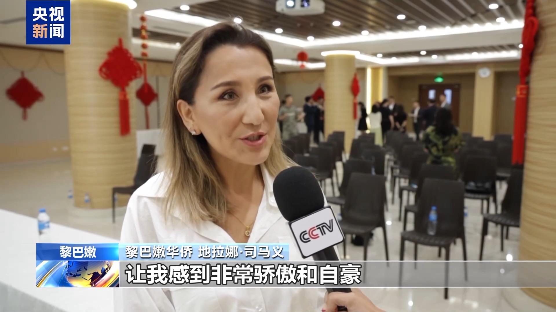 黎巴嫩華僑 地拉娜·司馬義:觀看了這個紀念儀式讓我感到非常驕傲和自豪,作為一名中國人,作為在海外的僑胞,有祖國在我們的背后給予我們最強大的力量,所以我感到非常驕傲和自豪。