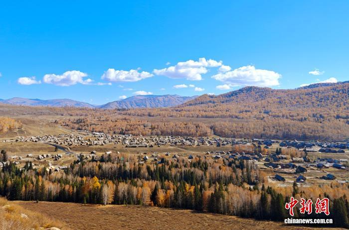 眼下新疆秋意正濃,位于阿勒泰地區布爾津縣的禾木村層林盡染,游人如織。