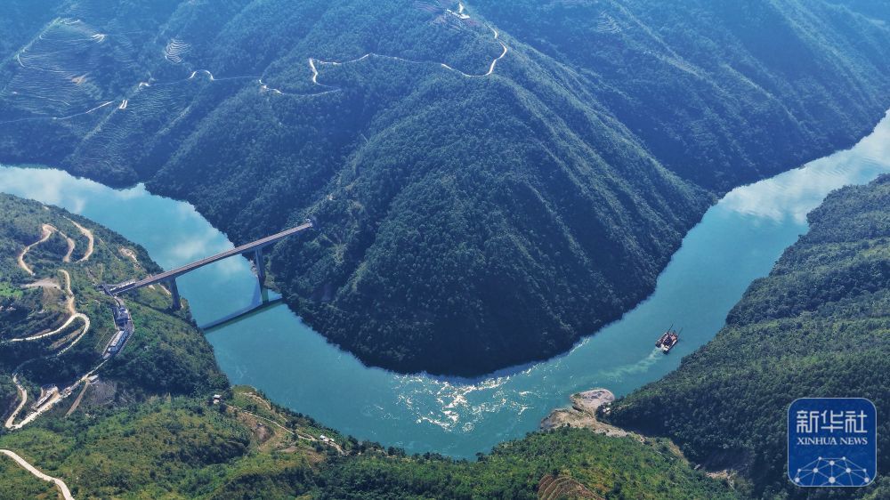 ↑ 這是位于瀾滄江江畔的小灣東站(10月30日攝,無人機照片)。