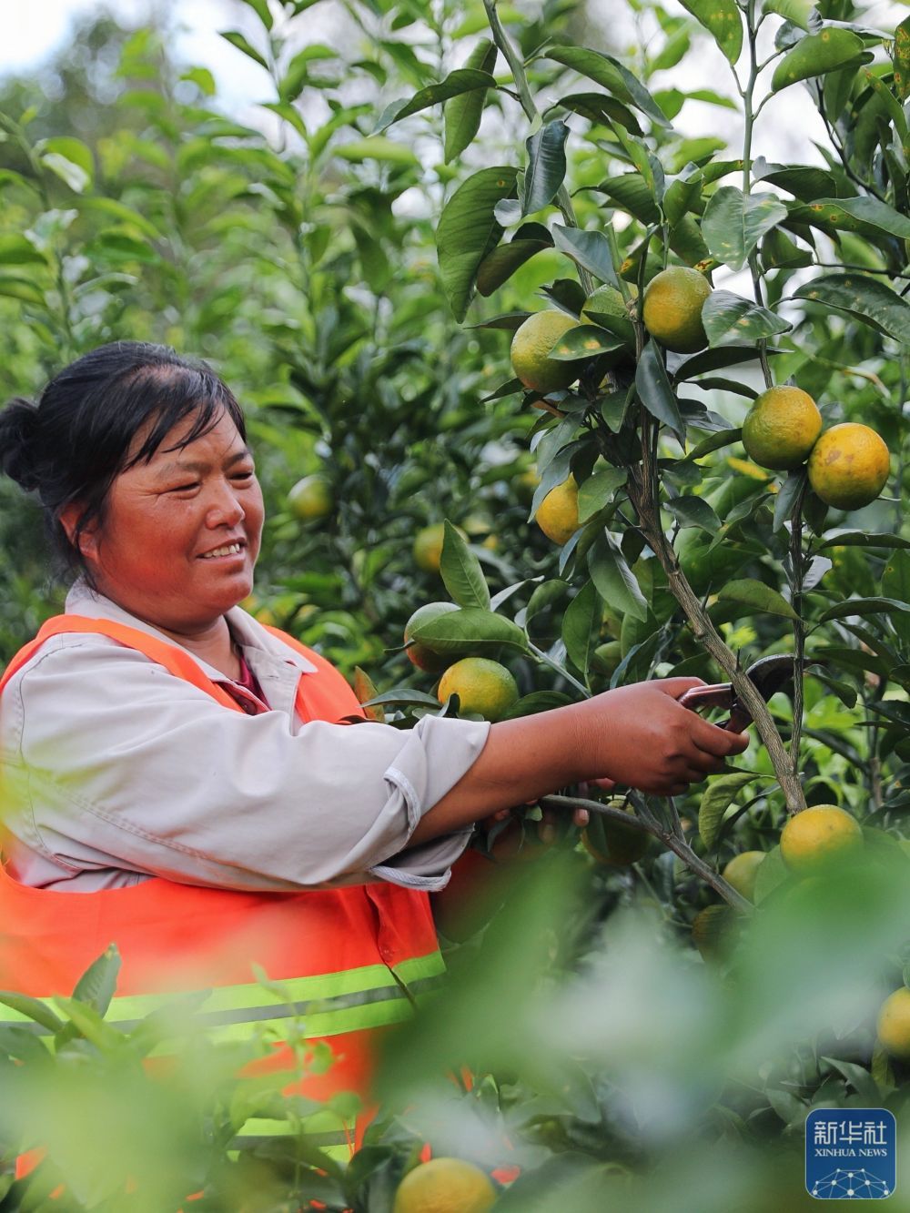 ↑ 10月30日,小灣東鎮居民在合作社的果園里勞作。