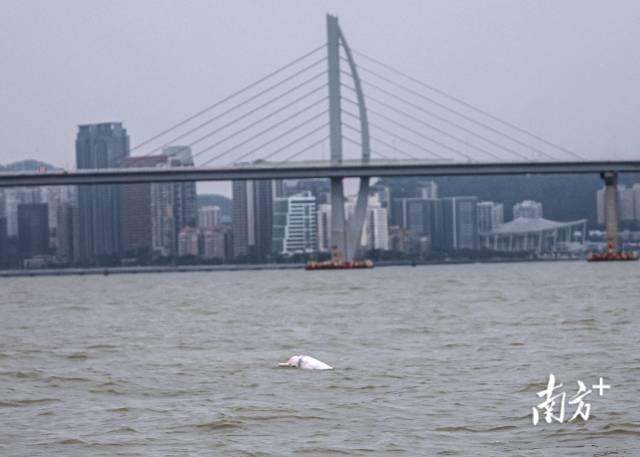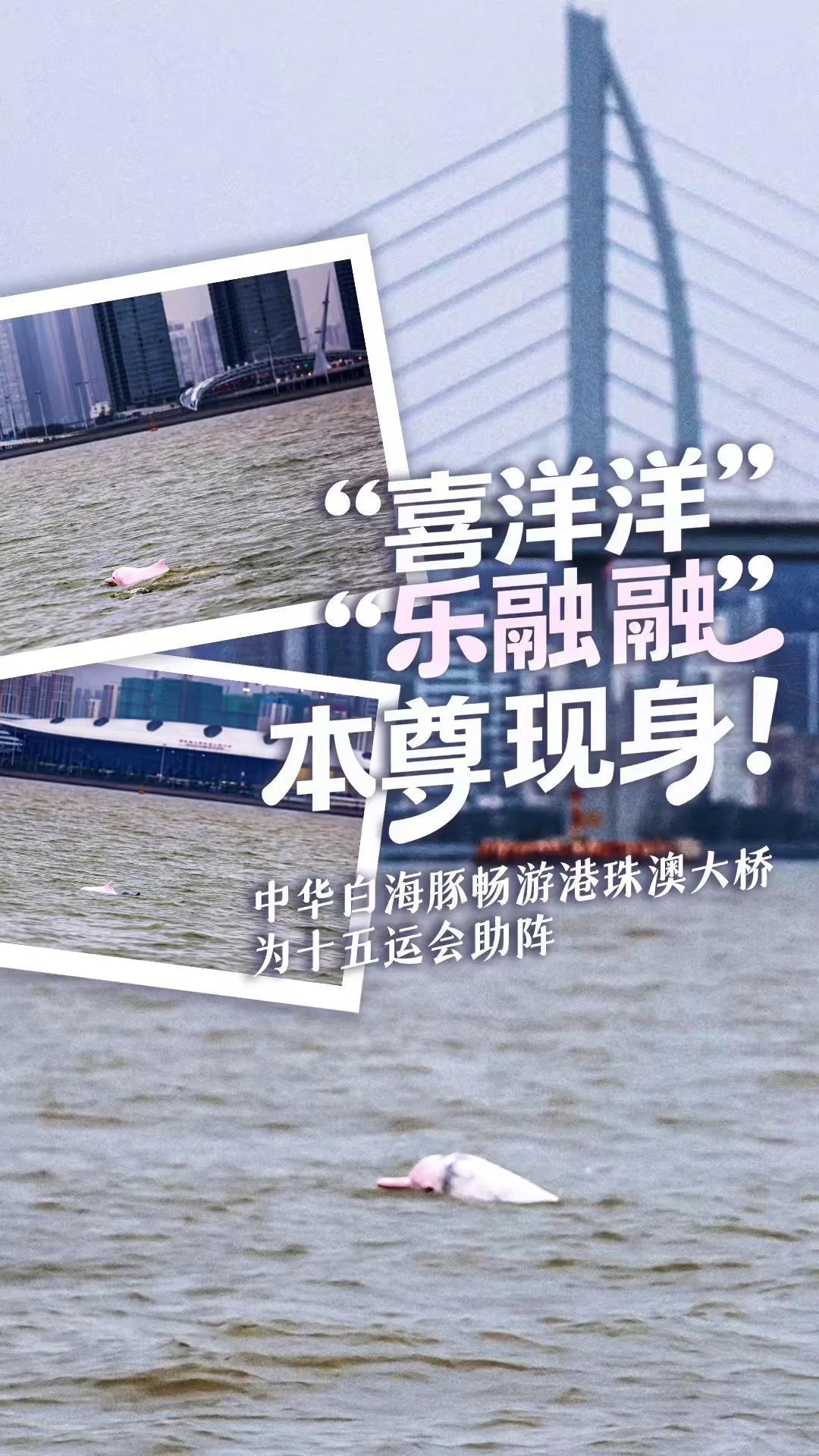 (“喜洋洋”“樂融融”本尊現身!中華白海豚暢游港珠澳大橋為十五運會助陣,時長共30秒)